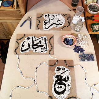What's more exciting than getting a client asking you to install a mosaic on the walls of the New Marina in Gouna :) An esteemed real estate company by the name of Remaal wanted me to create an "out of the box" mosaic with the words "buy, rent, sale" in English and the equivalent in Arabic: "شراء٫ ايجار٫ بيع" . I had to get creative enough not only to make it fun and crazy, but to make it in a way that would be easy to transport all the way to Gouna. That was one of the projects I had the most fun creating to date! Thank you Ramy Mehanna for giving me this wonderful opportunity.